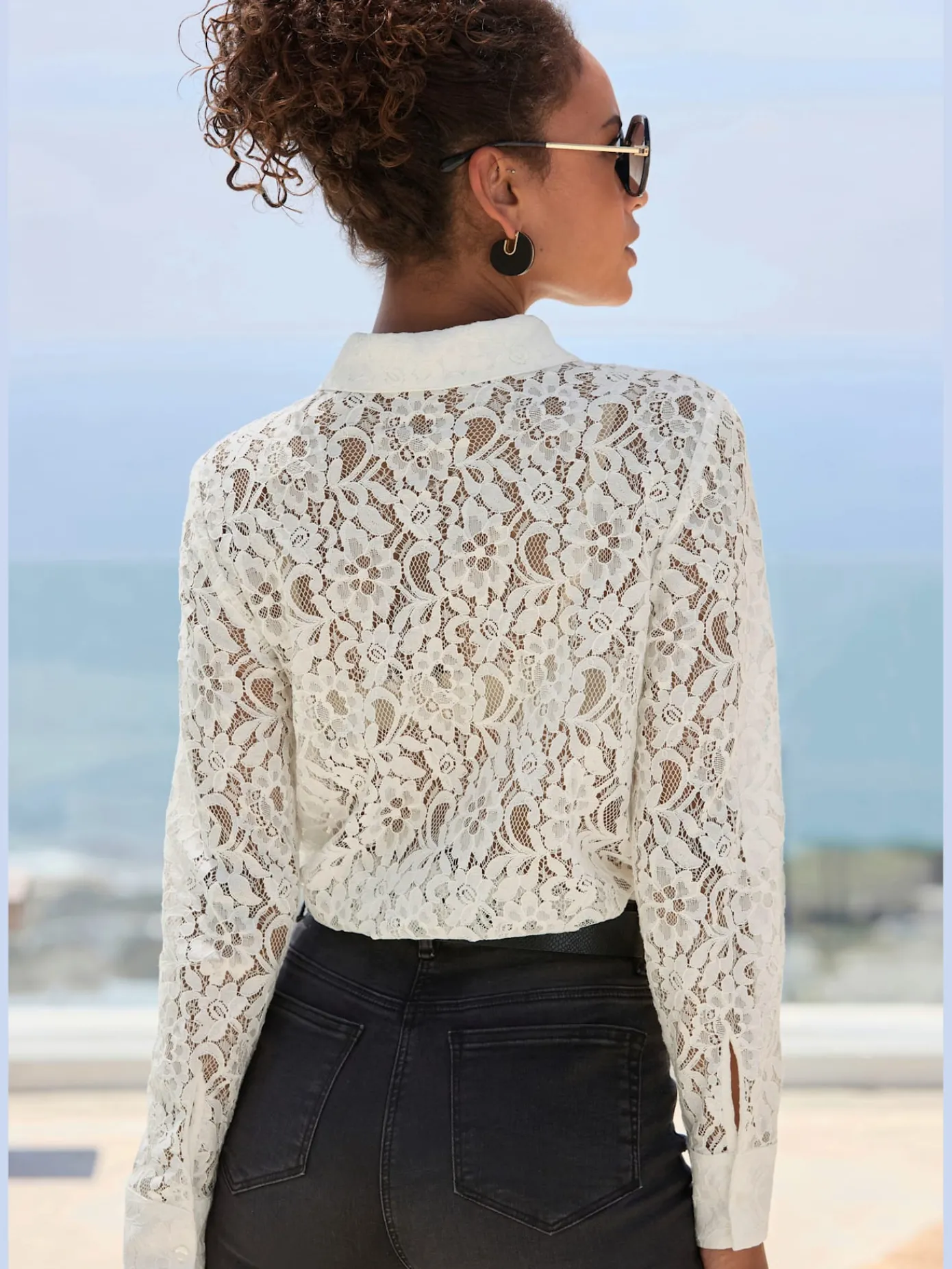 Pulls<Pull long col rond avec boutons décoratifs dorés sur les manches