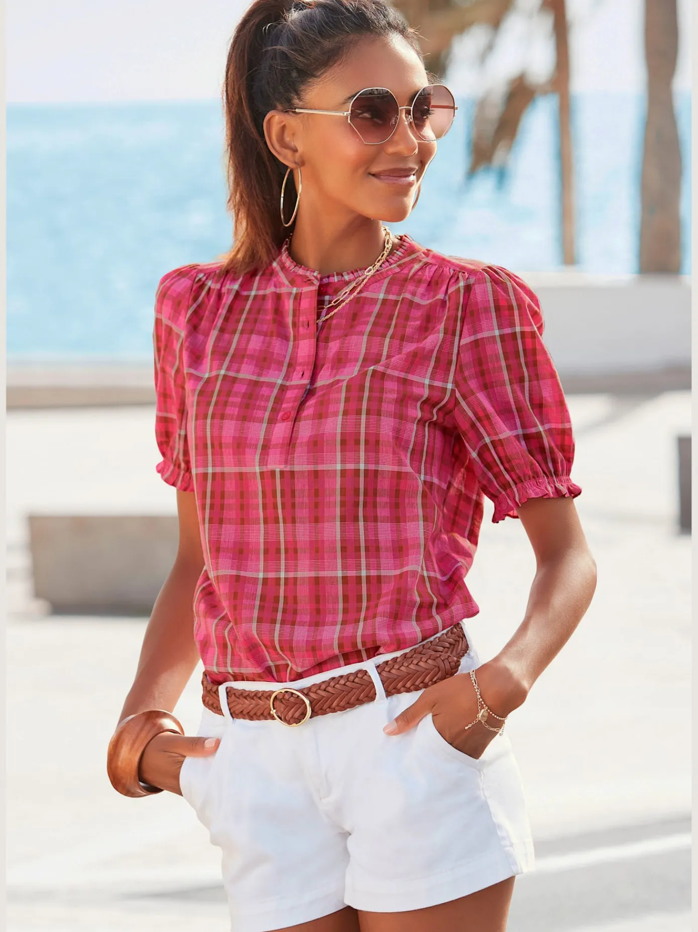 T-Shirts<T-shirt manches courtes col rond imprimé coquillages