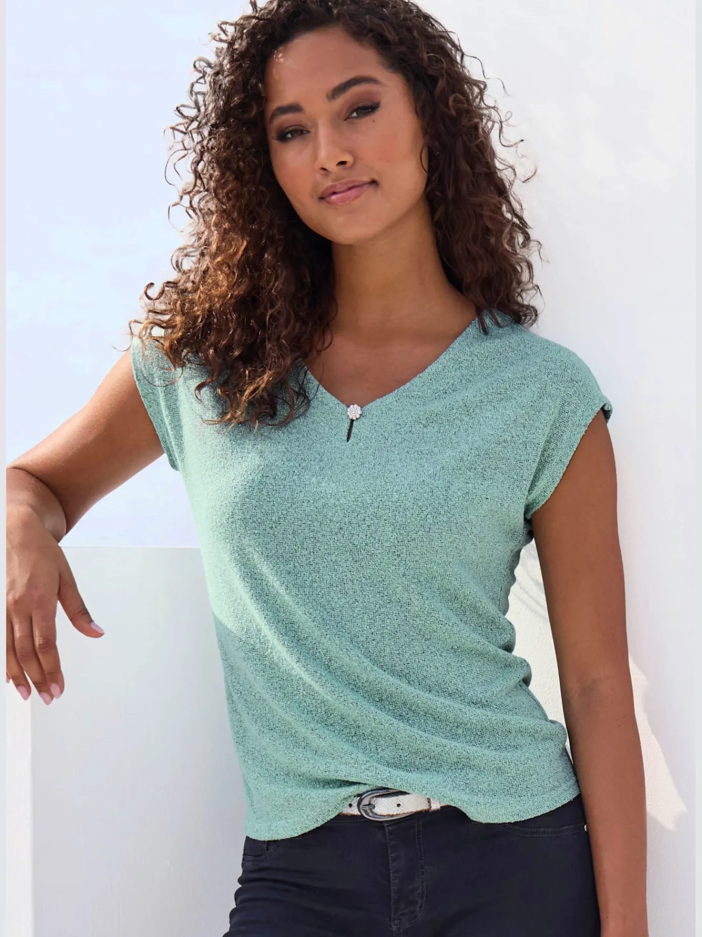 T-Shirts<T-shirt simple avec effet brillant sur encolure
