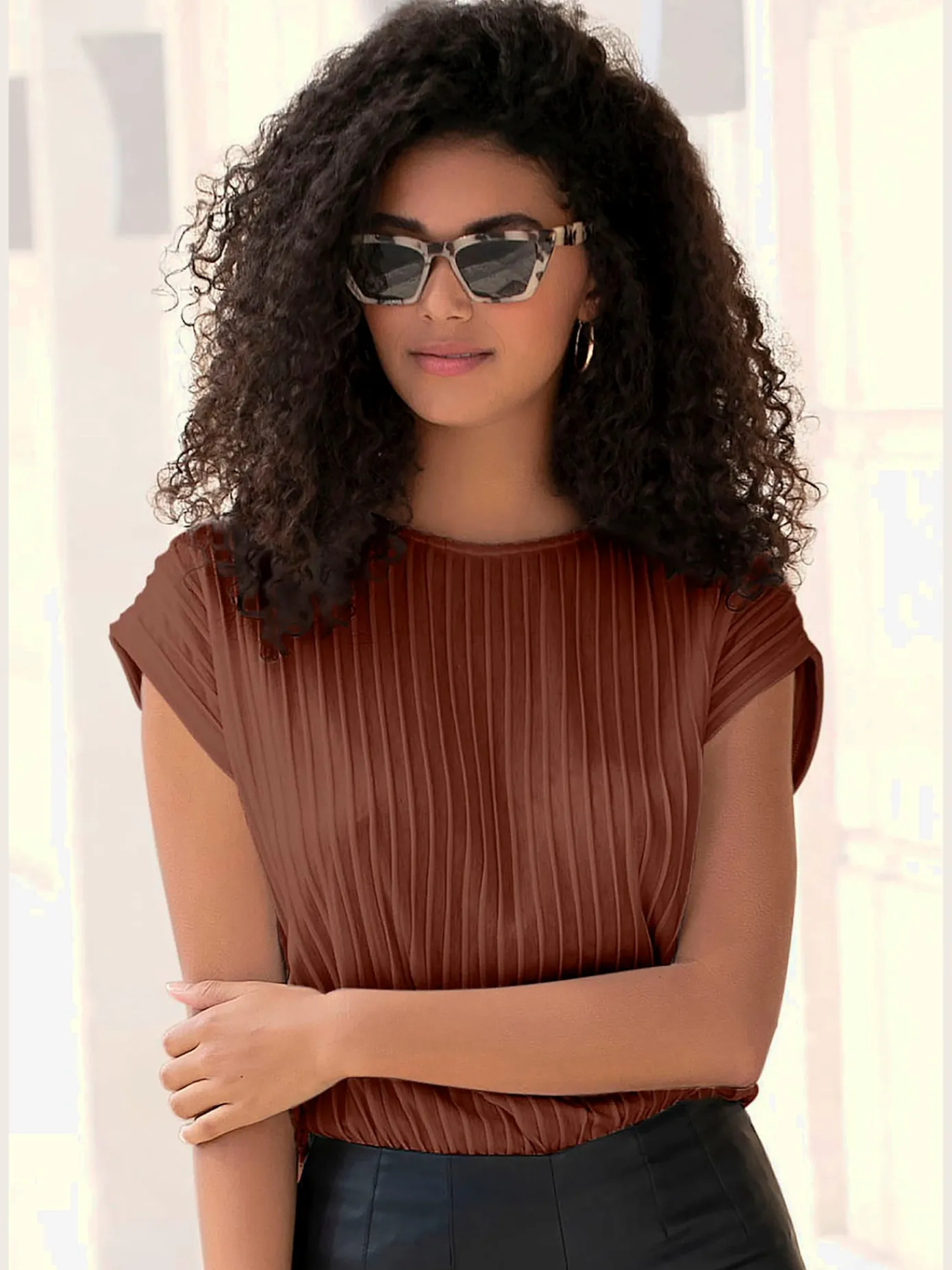 T-Shirts<T-shirt femme simple élégant manches doublées