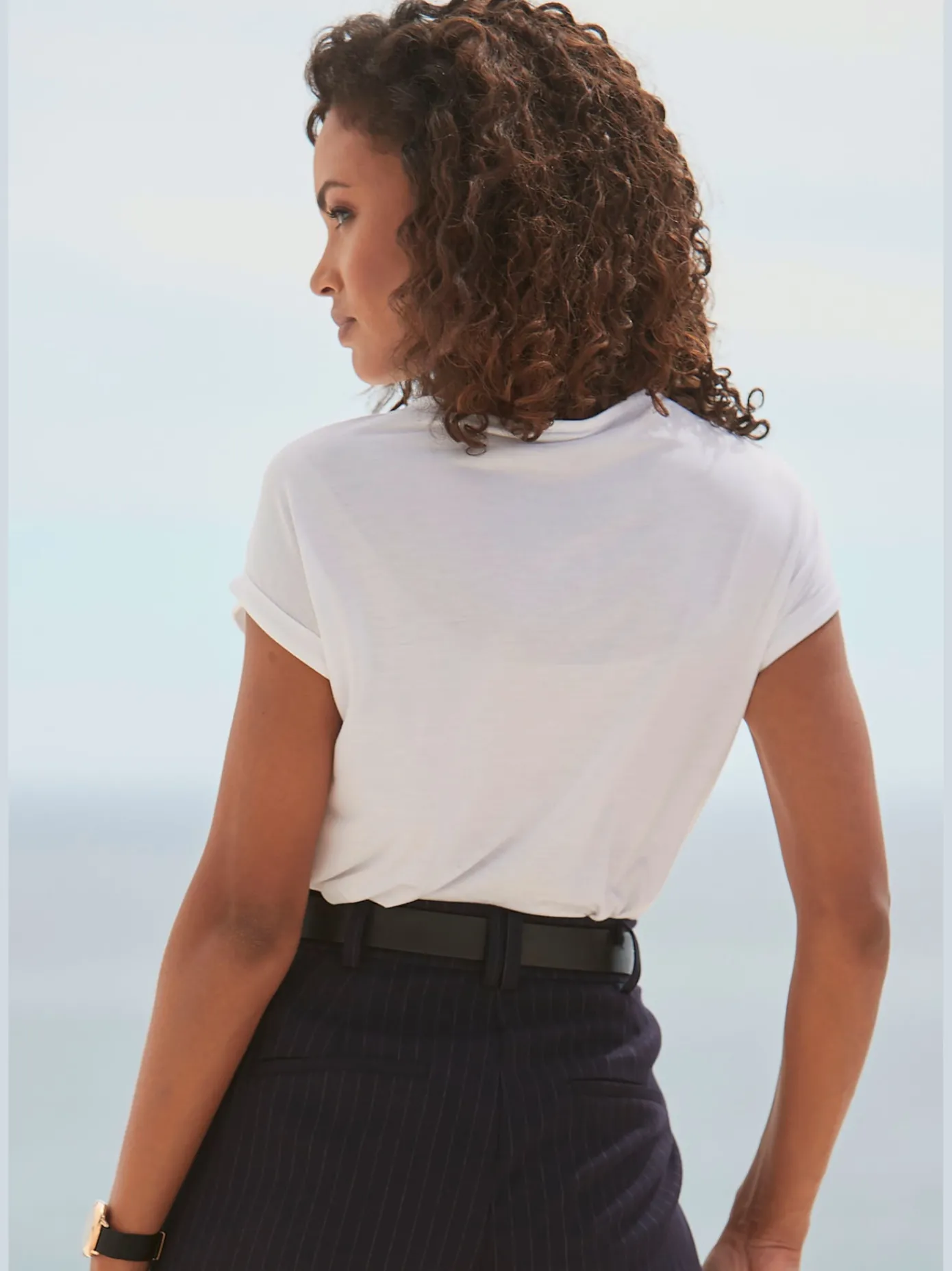 T-Shirts<T-shirt femme simple élégant manches doublées