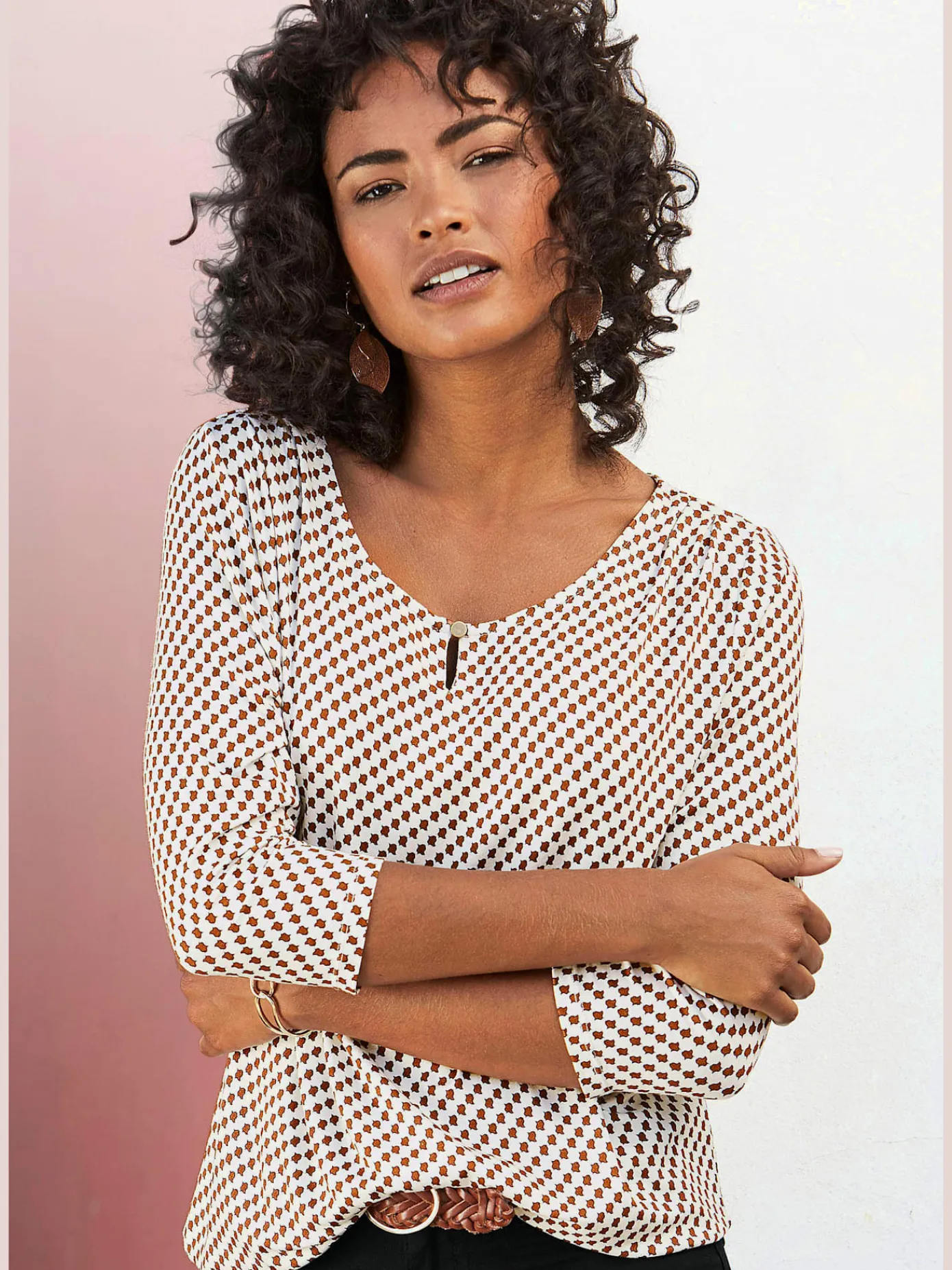 T-Shirts<T-shirt femme simple élégant manches doublées