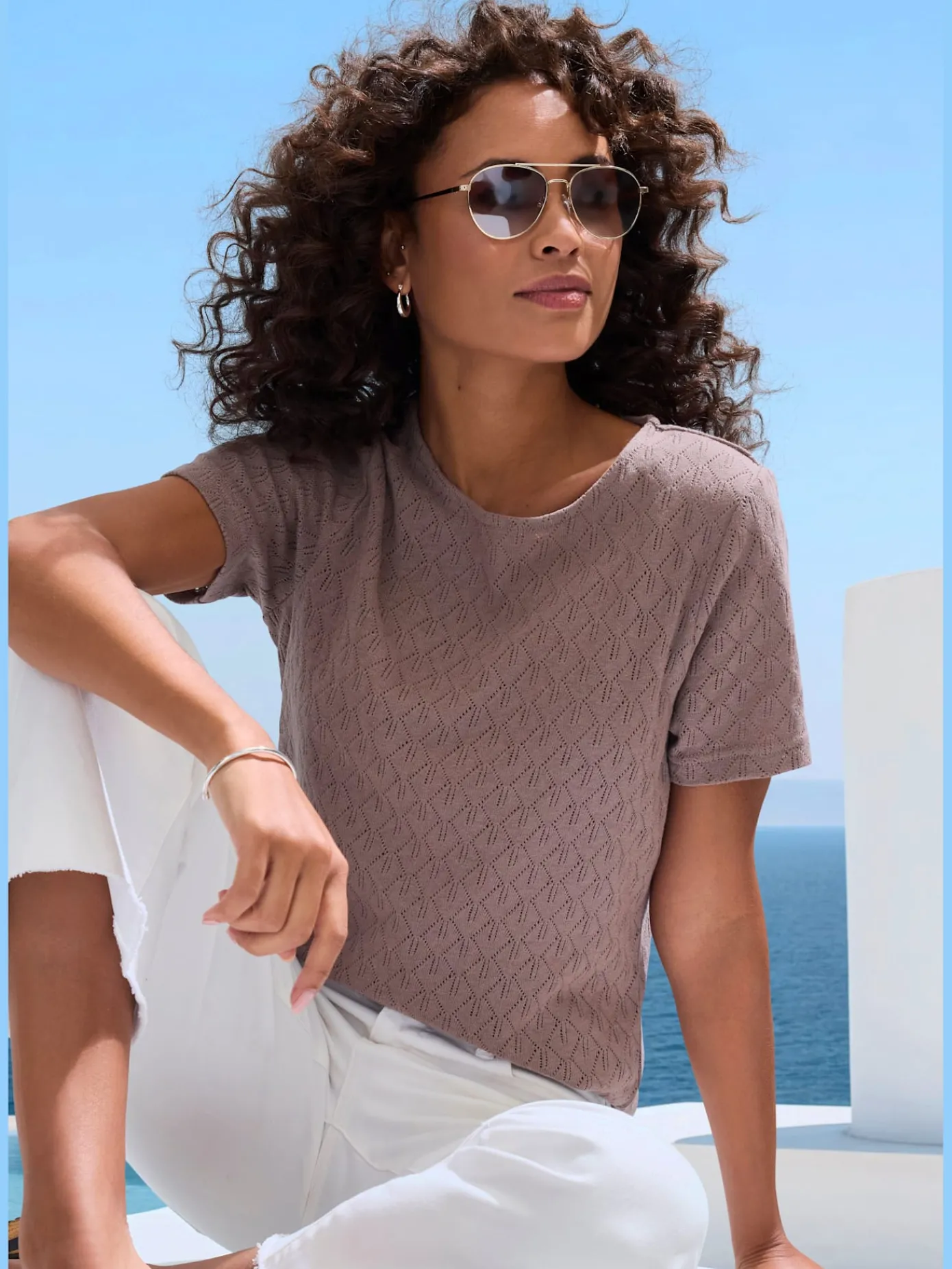 T-Shirts<T-shirt manches courtes col rond imprimé coquillages