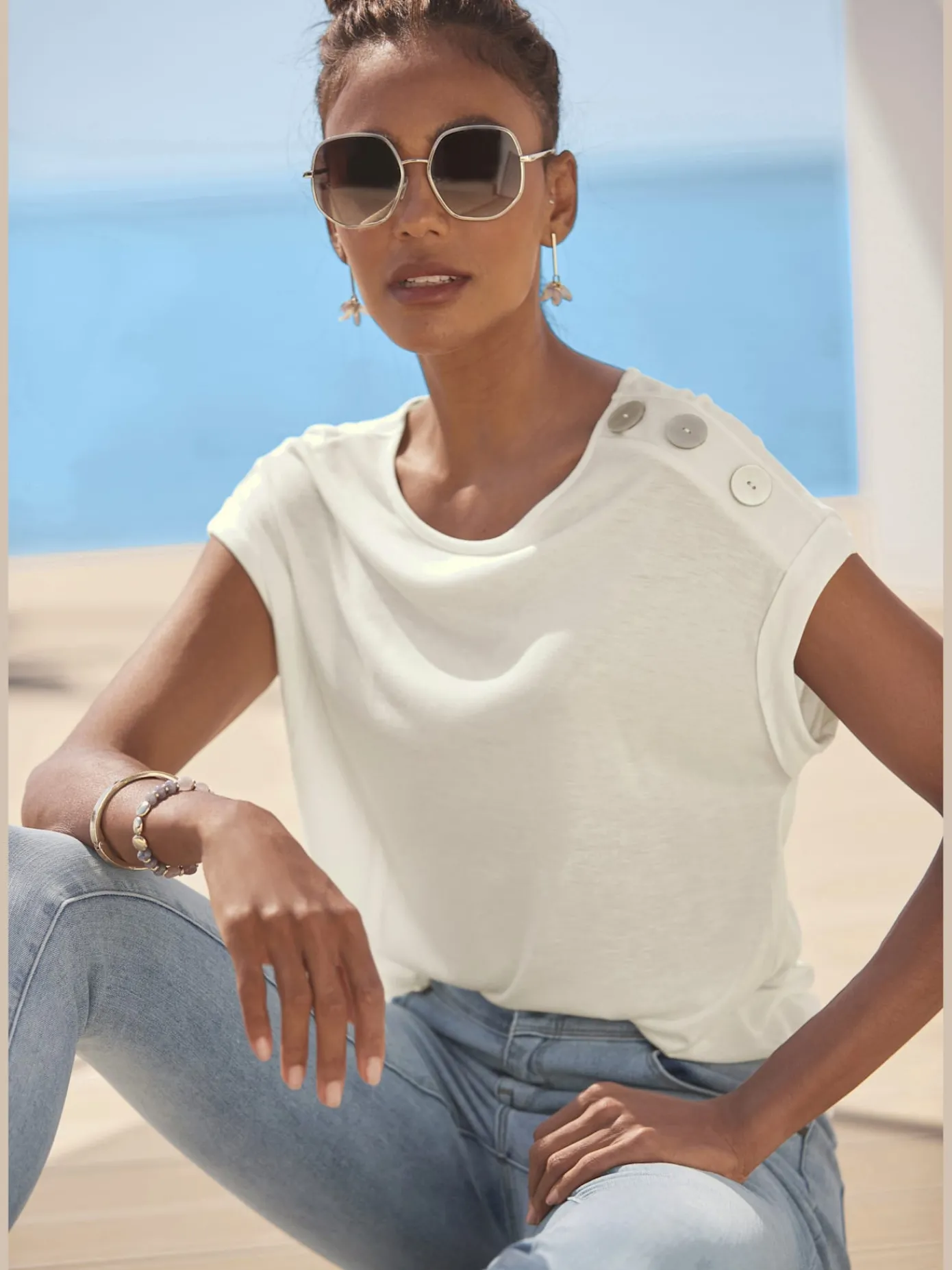 T-Shirts<T-shirt manches courtes col rond imprimé coquillages
