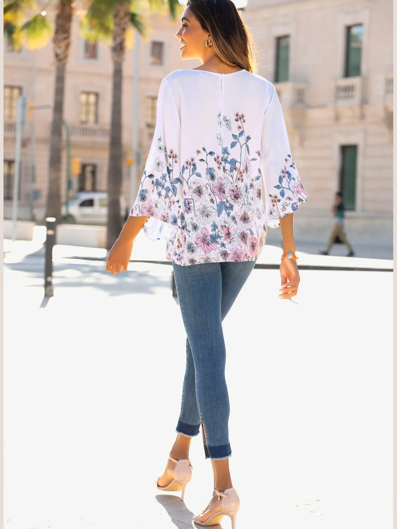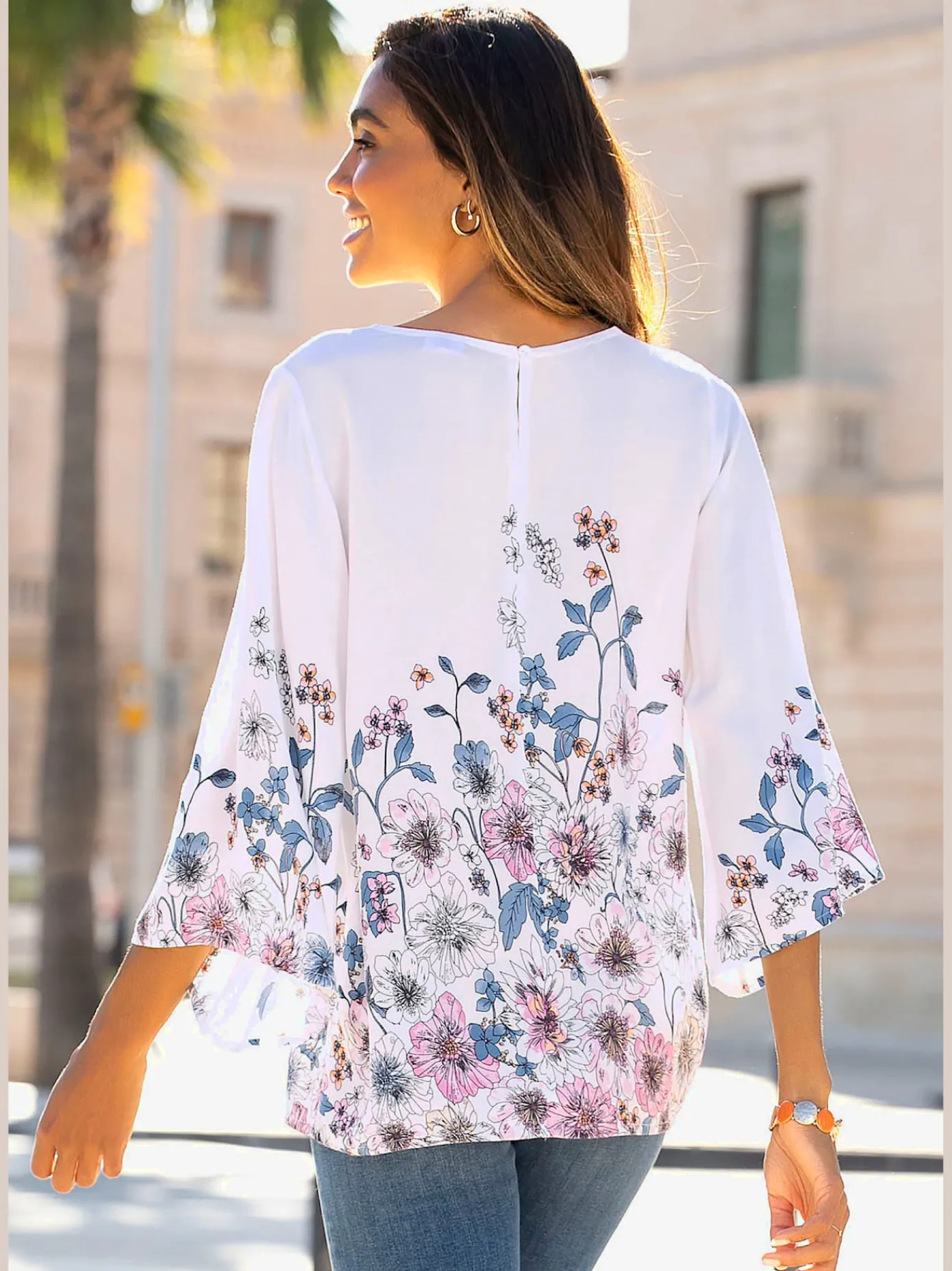 T-Shirts<T-shirt femme confortable manches 3/4 à revers