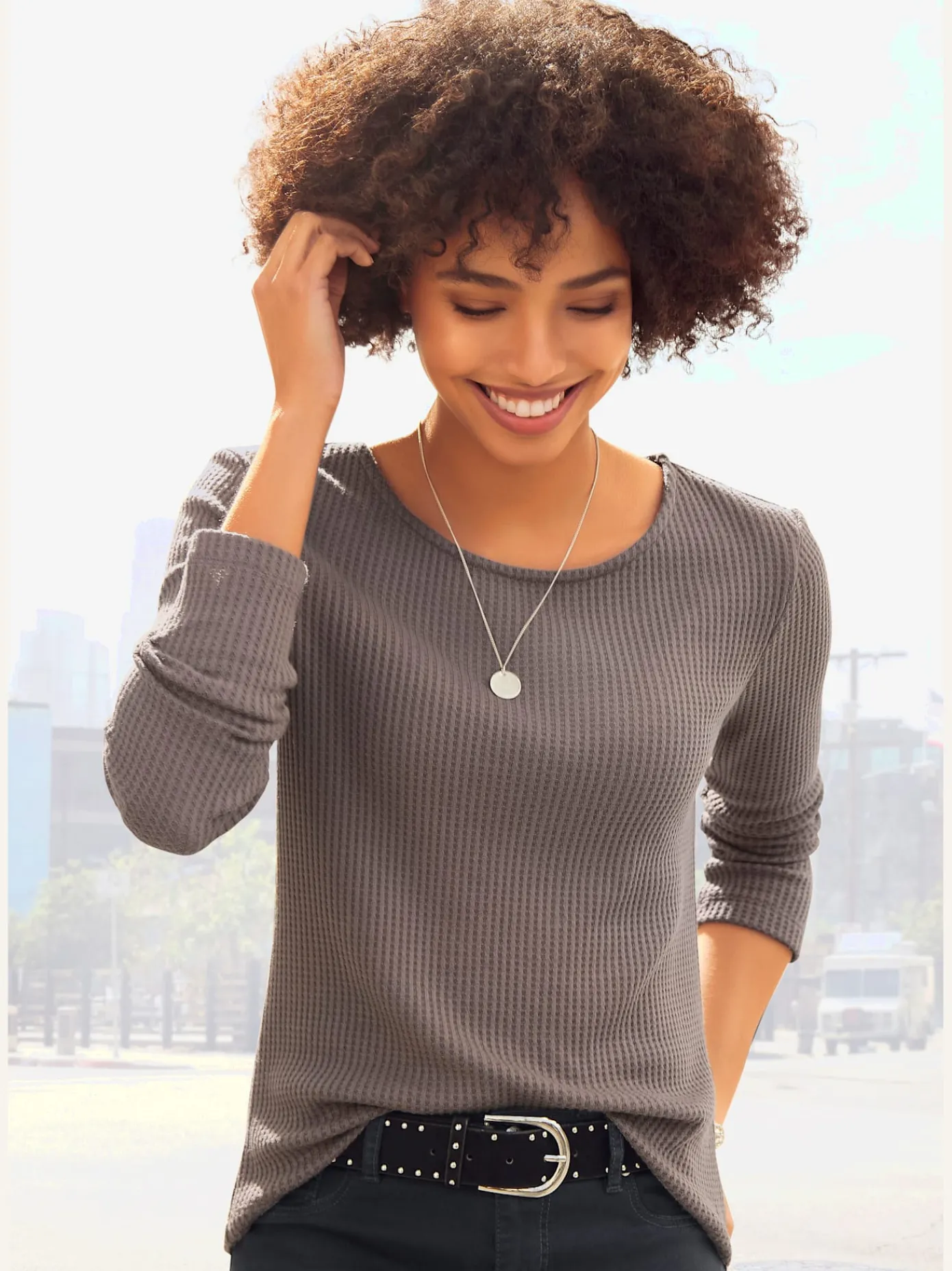 T-Shirts<T-shirt femme simple élégant manches doublées