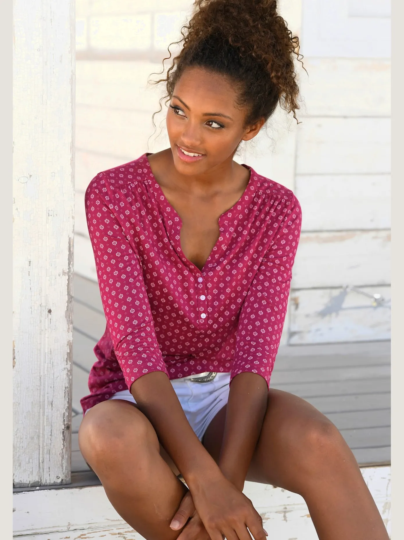 T-Shirts<T-shirt femme confortable manches 3/4 à revers