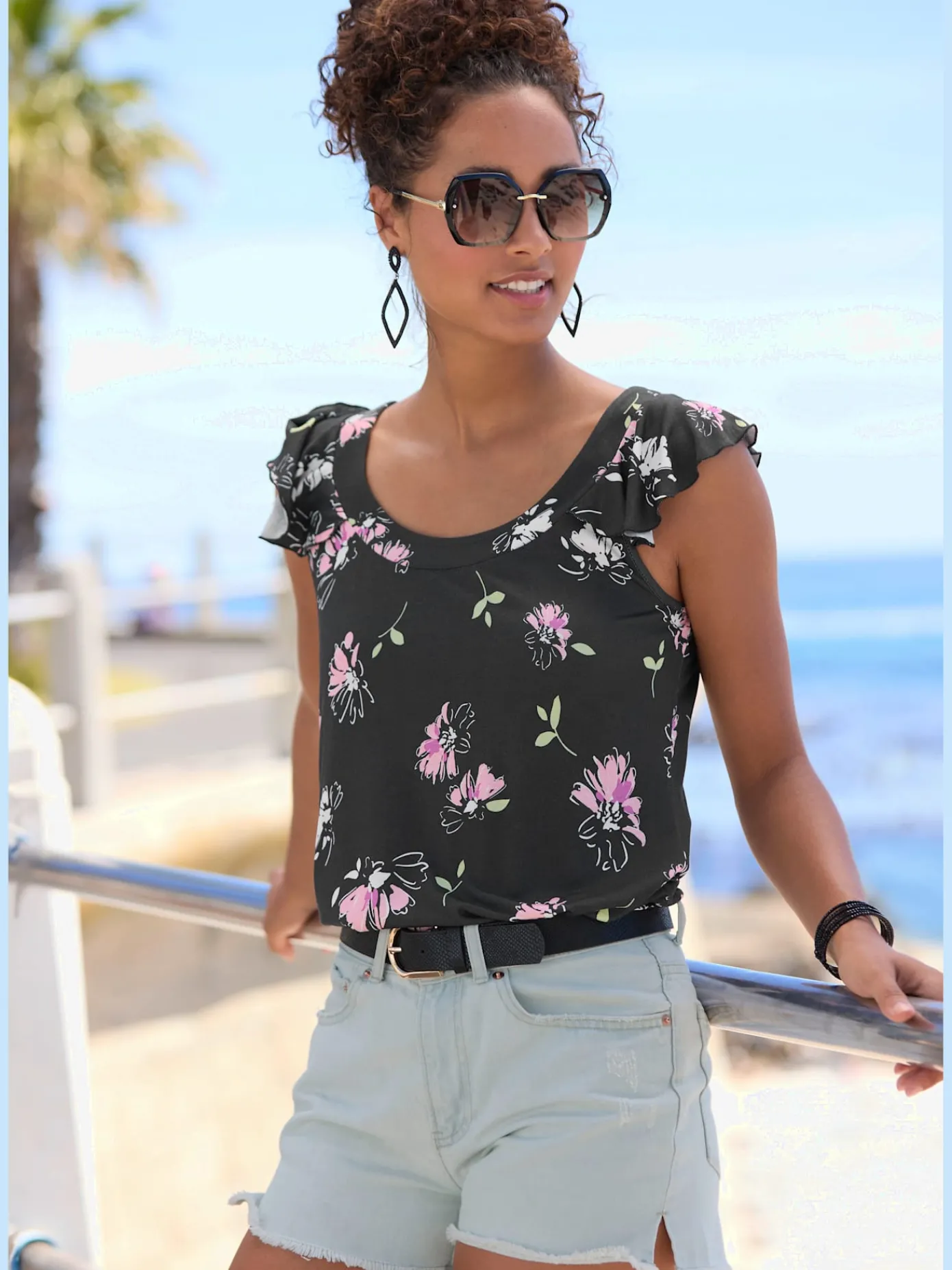 T-Shirts<T-shirt manches courtes col rond imprimé coquillages