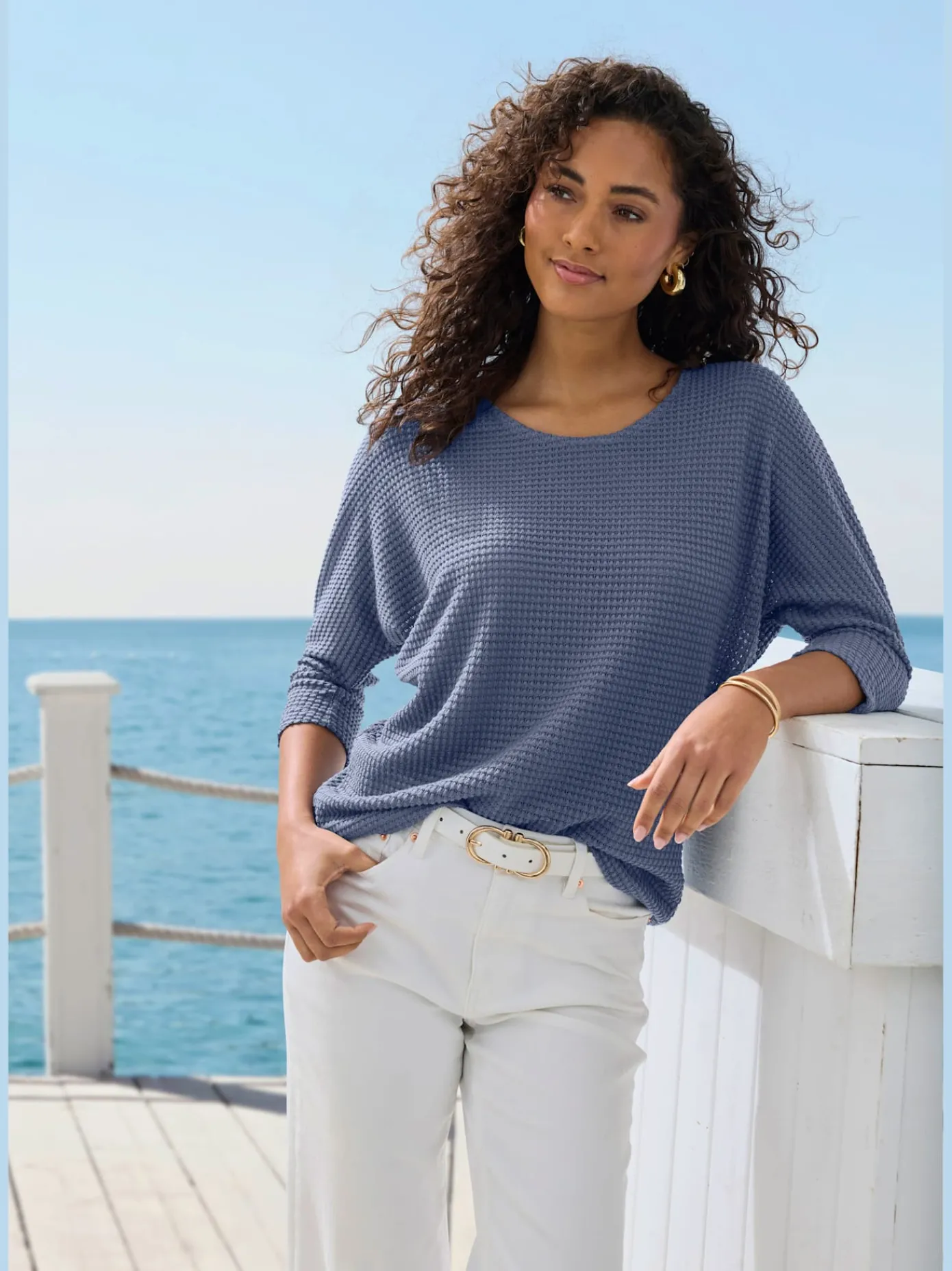 T-Shirts<T-shirt femme confortable manches 3/4 à revers