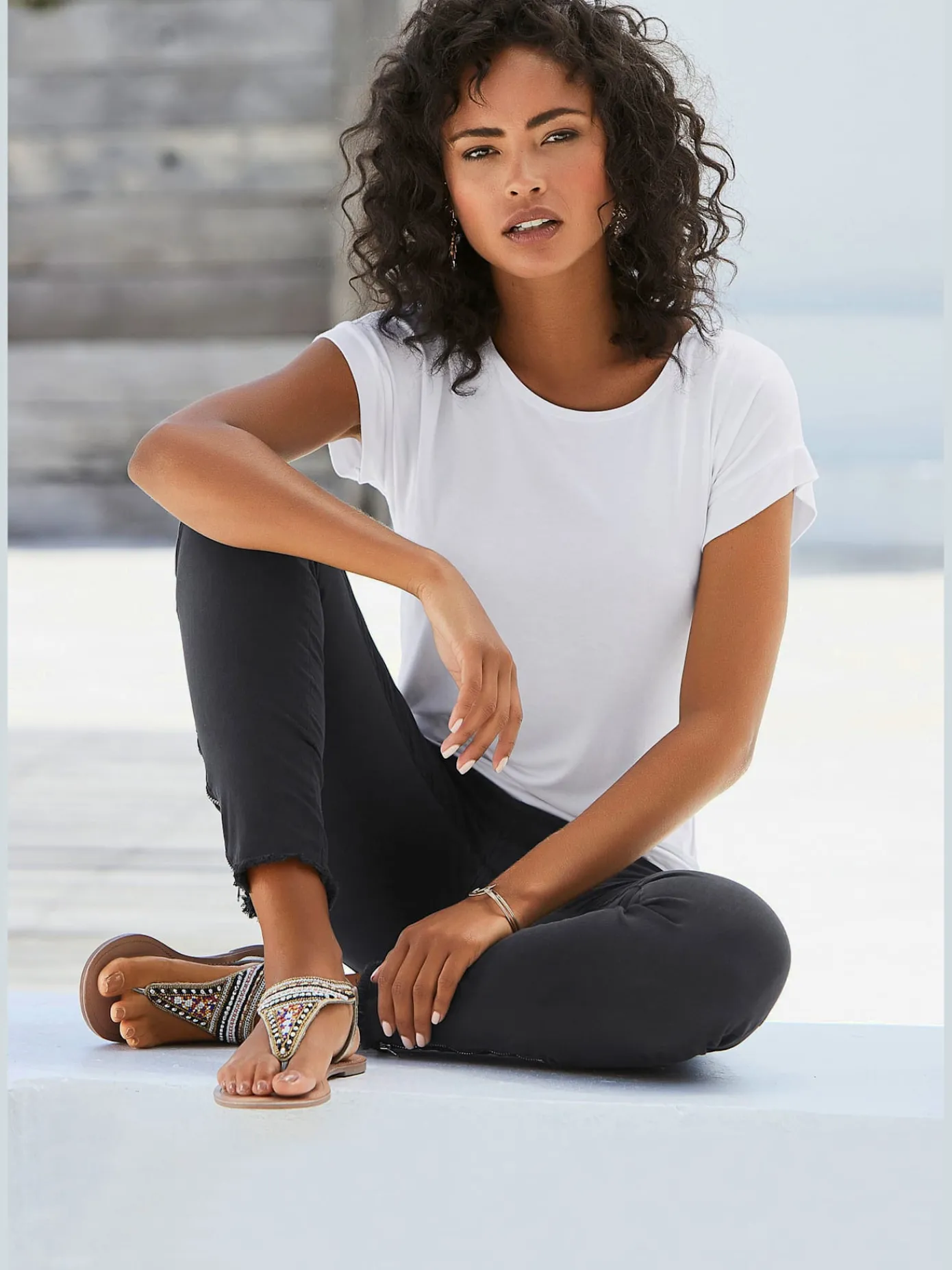 T-Shirts<T-shirt simple avec effet brillant sur encolure