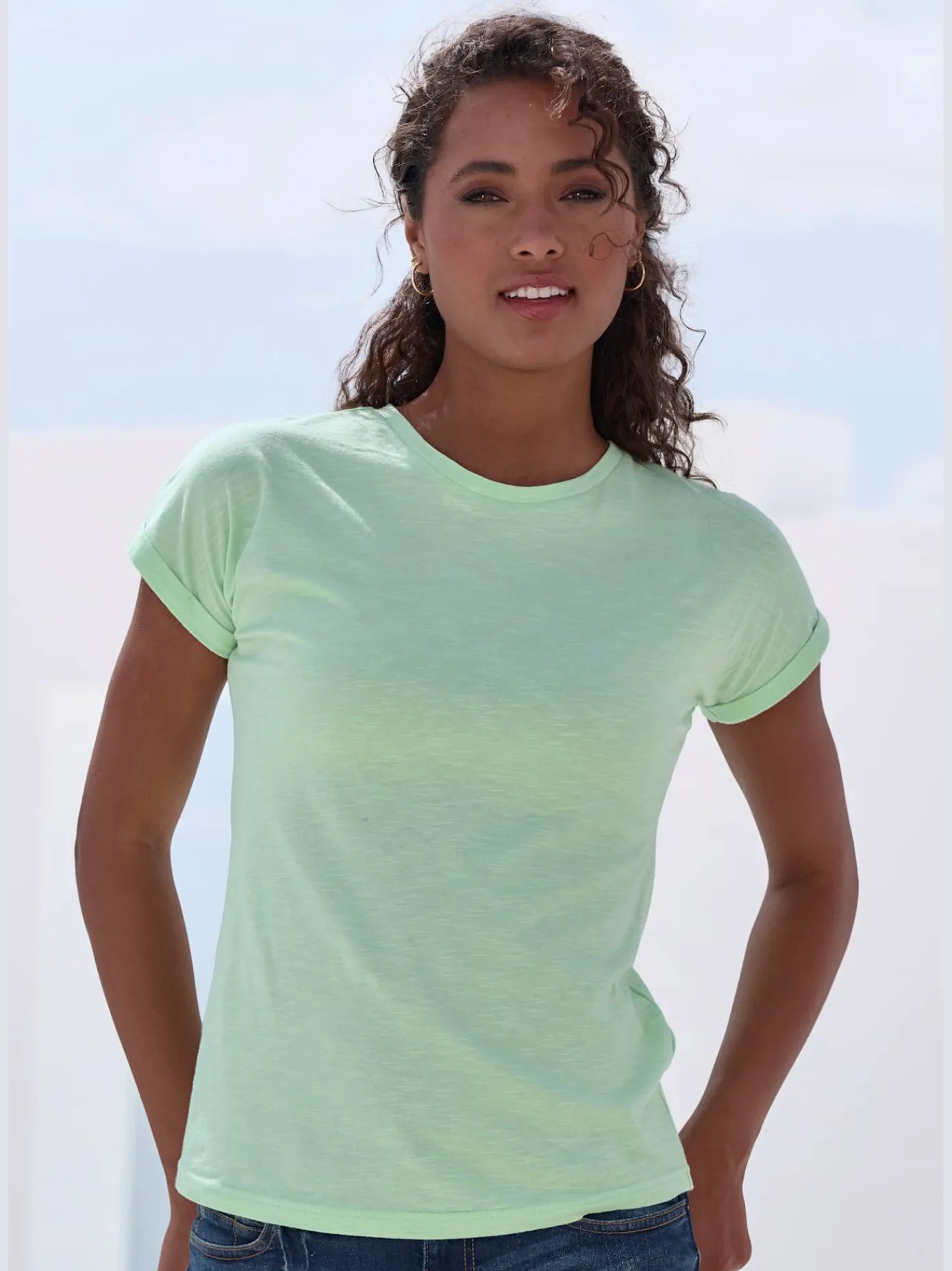 T-Shirts<T-shirt simple avec effet brillant sur encolure