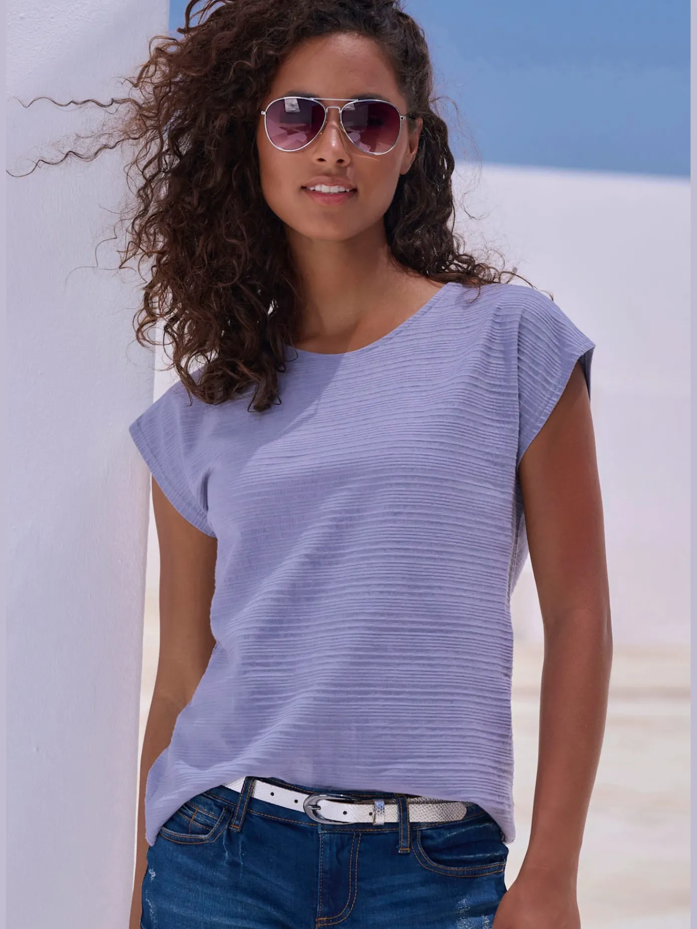 T-Shirts<T-shirt simple avec effet brillant sur encolure